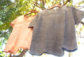 泥染めとは違って、土を直接染め付けるユニークな方法です。